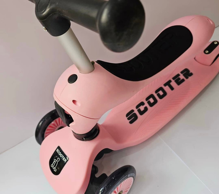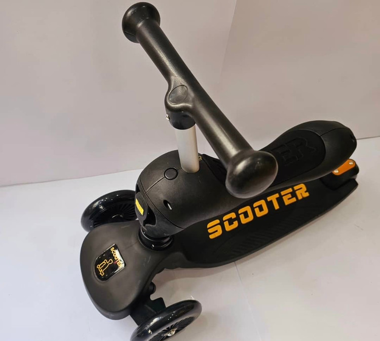 اسکوتر دوکاره کودک ABC TKWW به عنوان یک سرگرمی و تفریح و همچنین لذت یک سواری عالی را برای کودکان به ارمغان میآورد. استفاده از اسکوتر فواید بیشماری دارد. از بهبود تعادل، هماهنگی و مهارتهای خوب حرکتی گرفته تا کمک به اعتماد به نفس کودکان. کودک از سن 5 سالگی به بعد در حفظ تعادل خود توانا تر می شود. از این روی استفاده از اسکوترهای ۳ چرخ می تواند گزینه مناسبی برای آنان باشد. والدین می توانند برای فرزاندان خود را در این گروه سنی، بسته به میزان توانایی کودک در حفظ تعادل و کنترل، اسکوتر دارای ۲ و یا ۳ چرخ را برای فرزند خود انتخاب نمایند. کودکان ۲ تا 5 ساله از آنجایی که در مرحله فراگیری راه رفتن قرار دارند، نیازمند اسکوتری هستند که بتواند ثبات بیشتری در حرکت آنان پدید آورد. از این روی اسکوترهای ۳ چرخ می تواند گزینه مناسبی برای این دوره سنی باشد. این نوع علاوه بر ثبات بالا از سرعت بالایی نیز برخوردار هستند. طراحی این اسکوتر ها به گونه ای است که که در قسمت عقب دارای 1 چرخ و در قسمت جلو 2 چرخ قرار داده شده است. میزان تعادل بالا و امنیت را می توان مهمترین مزیت این نوع اسکوتر برای این رده سنی دانست. معمولا استفاده از اسکوترهای ۲ چرخ برای کودکان بالای ۷ سال توصیه می شود. اسکوتر دوکاره کودک 3 چرخ ABC TKWW با قابلیت اسکوتر ایستاده و اسکوتر نشسته، دارای صندلی متحرک، فرمان ثابت و چرخ های متحرک می باشد و چرخ عقب آن چراغدار با ترمز عقب است که میتواند گزینه ی مناسبی برای کودکان زیر 6 سال باشد. جنس این اسکوتر بدنه فلزی با فلاپ پلاستیک با کیفیت و درجه یک ساخته شده است