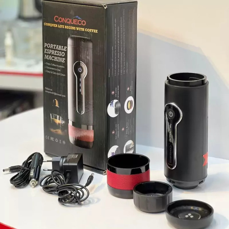 Conqueco یک قهوه ساز مسافرتی قابل شارژ در ماشین و یا آداپتور می باشد که مناسب برای تهیه کپسول های قهوه ساز مثل کپسول های نسپرسو میباشد. این دستگاه با کاربری بسیار آسان و همچنین کارایی بی نظیر به شما امکان تهیه قهوه اسپرسو (با استفاده از کپسول های قهوه نسپرسو) را می دهد.