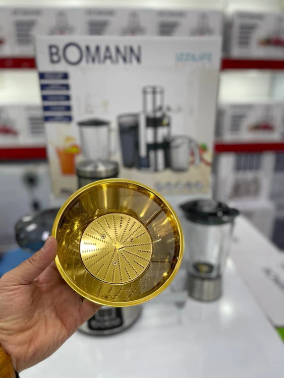 بومن این ابمیوه گیری را به صورت دوکاره تولید کرده است و در کنار ان یک ظرف مخلوط کن شیشه ای با گنجایش 1.8 لیتر نیز قرار داده است.