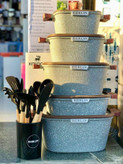 در مجموع، سرویس قابلمه ۱۰ پارچه برلین مدل 2300 با طراحی مربعشکل، کیفیت بالای گرانیتی و زیبایی منحصربهفرد، ترکیبی از دوام، ظرافت و عملکرد حرفهای برای آشپزخانههای مدرن است.