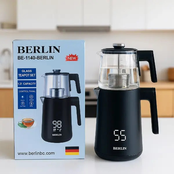 ۱. چای ساز برلین مدل BE-1140 با توان مصرفی 1500 وات و المنت حرارتی مخفی