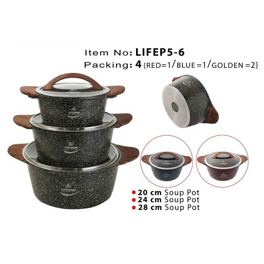 تعداد پارچه6 پارچهساختار بدنهآلومینیومجنس دربشیشهجنس دستگیره هاباکالیتسایز قابلمه (ها)20، 24، 28 سانتی متر