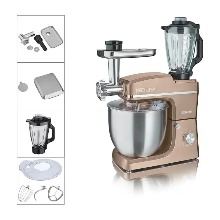 صبحی را تصور کن که بوی نان تازه در آشپزخانه پیچیده است. خمیر را در کاسه استیل بزرگ می ریزی، دستگاه را روشن می کنی و صدای یکنواخت همزن آرام در فضا پخش می شود. چند دقیقه بعد همان دستگاه به چرخ گوشت تبدیل می شود تا مواد لازانیای خانگی ات را آماده کند، و در آخر با پارچ شیشه ای مخلوط کنش، برای خودت اسموتی خنک می سازی. اینجا همه چیز با ماشین آشپزخانه هنریچ مدل 8083 ممکن است.همزن، چرخ گوشت و مخلوط کن در یک دستگاه حرفه ای.