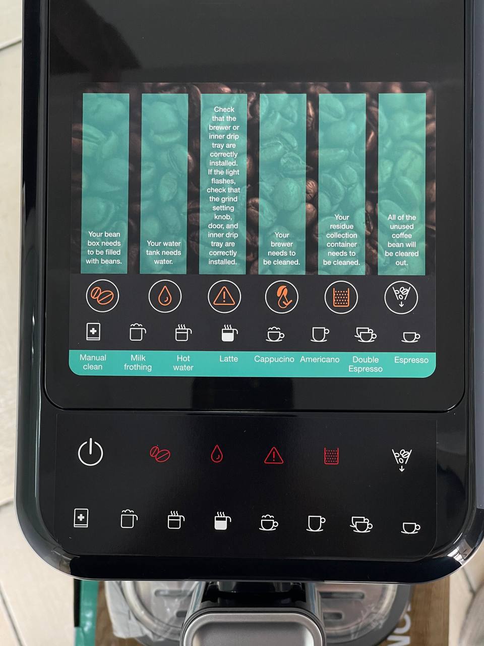 نوشیدنیهای قابل تهیه اسپرسو، امریکانو، اسپرسو دوبل، لاته ماکیاتو، آب داغ، کاپوچینو، شیر داغ